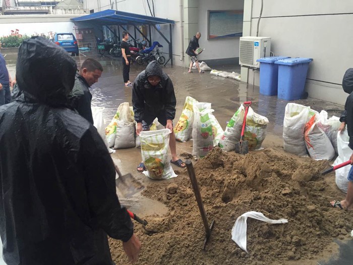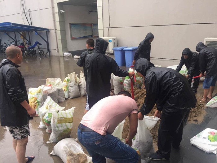2016719日夜間至20日一場(chǎng)強(qiáng)降雨襲擊我市,還伴有大風(fēng)天氣,市區(qū)降水量普遍達(dá)30~50毫米,部分路段積水甚至沒過了膝蓋。廣豐集團(tuán)高度重視防汛工作,董事長(zhǎng)親臨現(xiàn)場(chǎng),緊急部署,動(dòng)員公司全體員工,投入防汛工作。